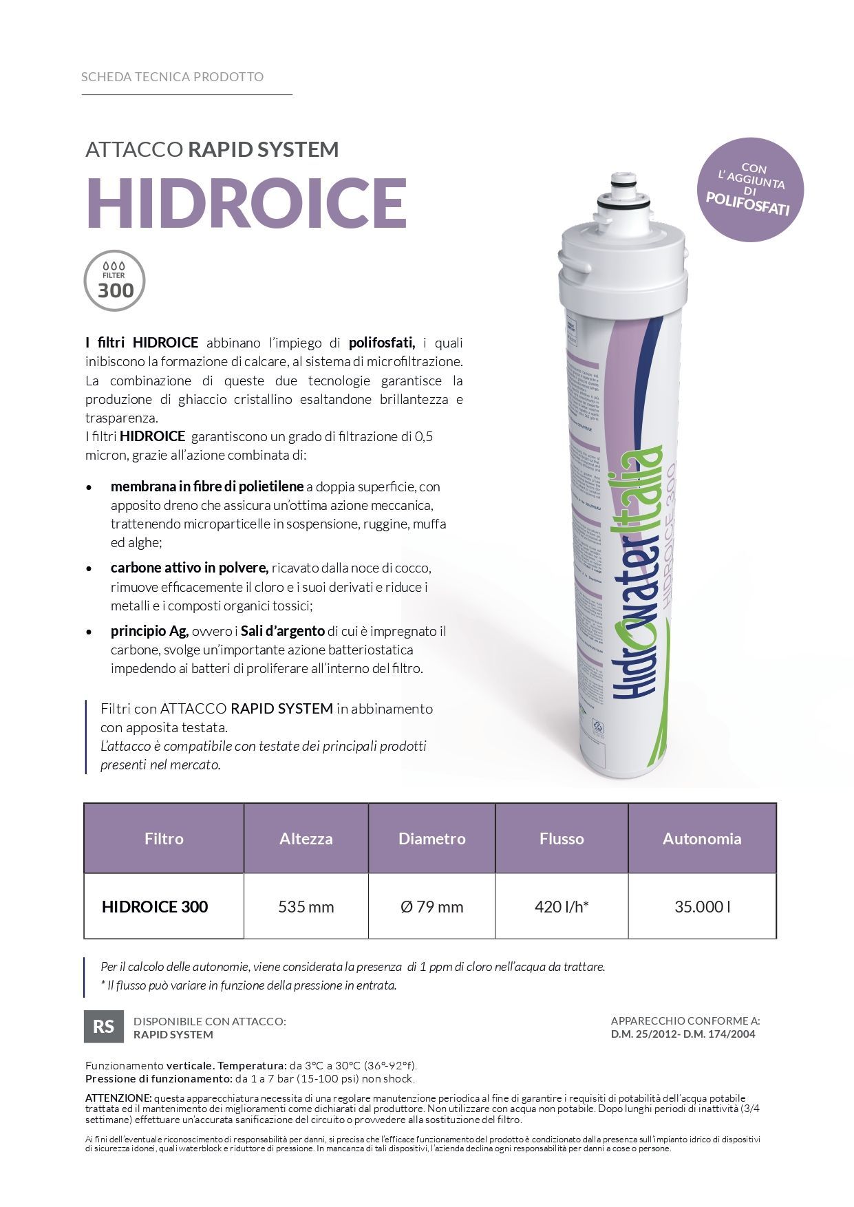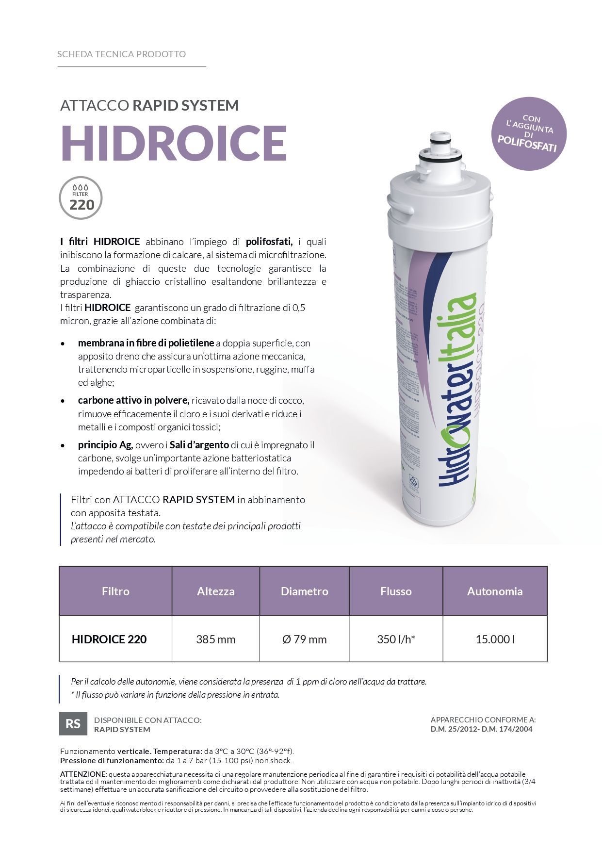 I filtri HIDROICE abbinano l’impiego di polifosfati, i quali inibiscono la formazione di calcare, al sistema di microfiltrazione. La combinazione di queste due tecnologie garantisce la produzione di ghiaccio cristallino esaltandone brillantezza e trasparenza.